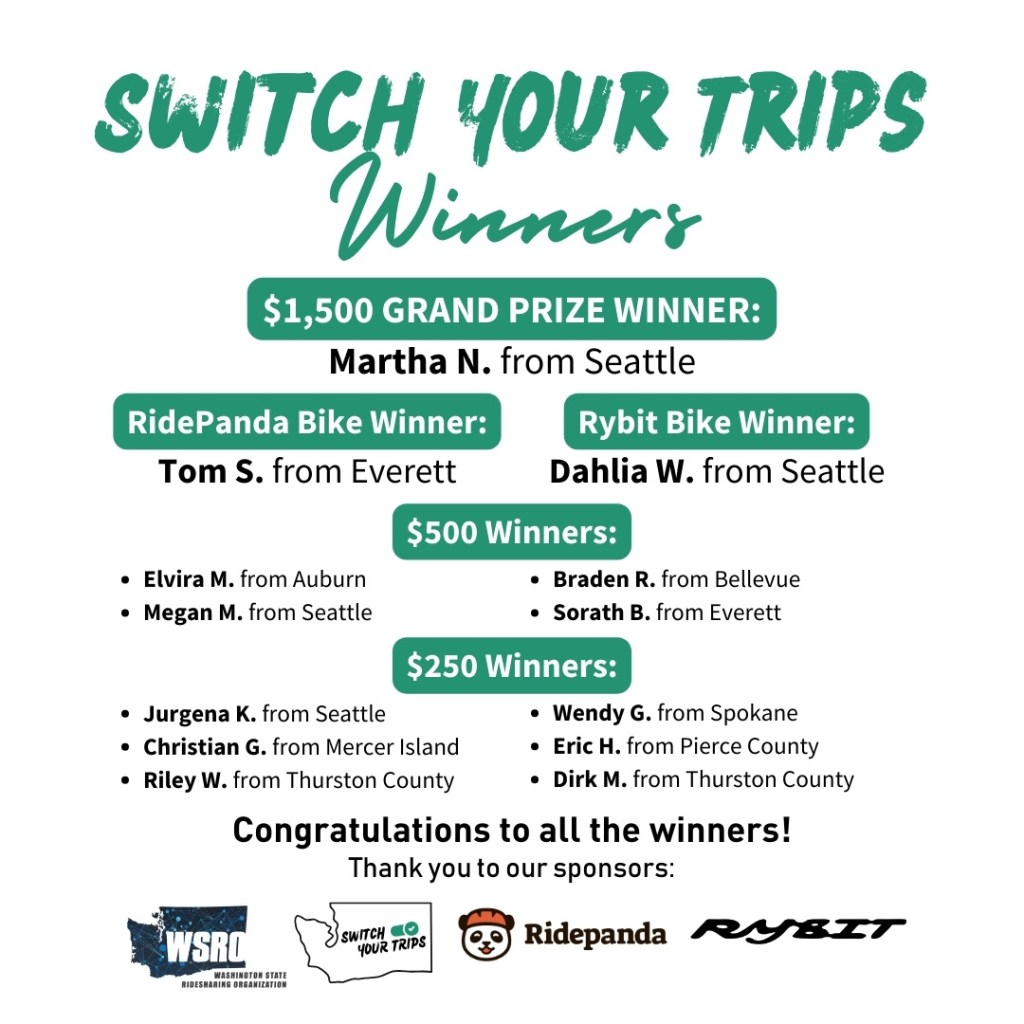 “I am riding (the e-bike) basically every day, and I absolutely love it! I actually sold my car partly because I now get to work almost just as fast on the e-bike . . . I am so stoked/grateful that this grand prize is helping me towards my fossil fuel free goals!” – Matthew H, 2024 Grand Prize winner